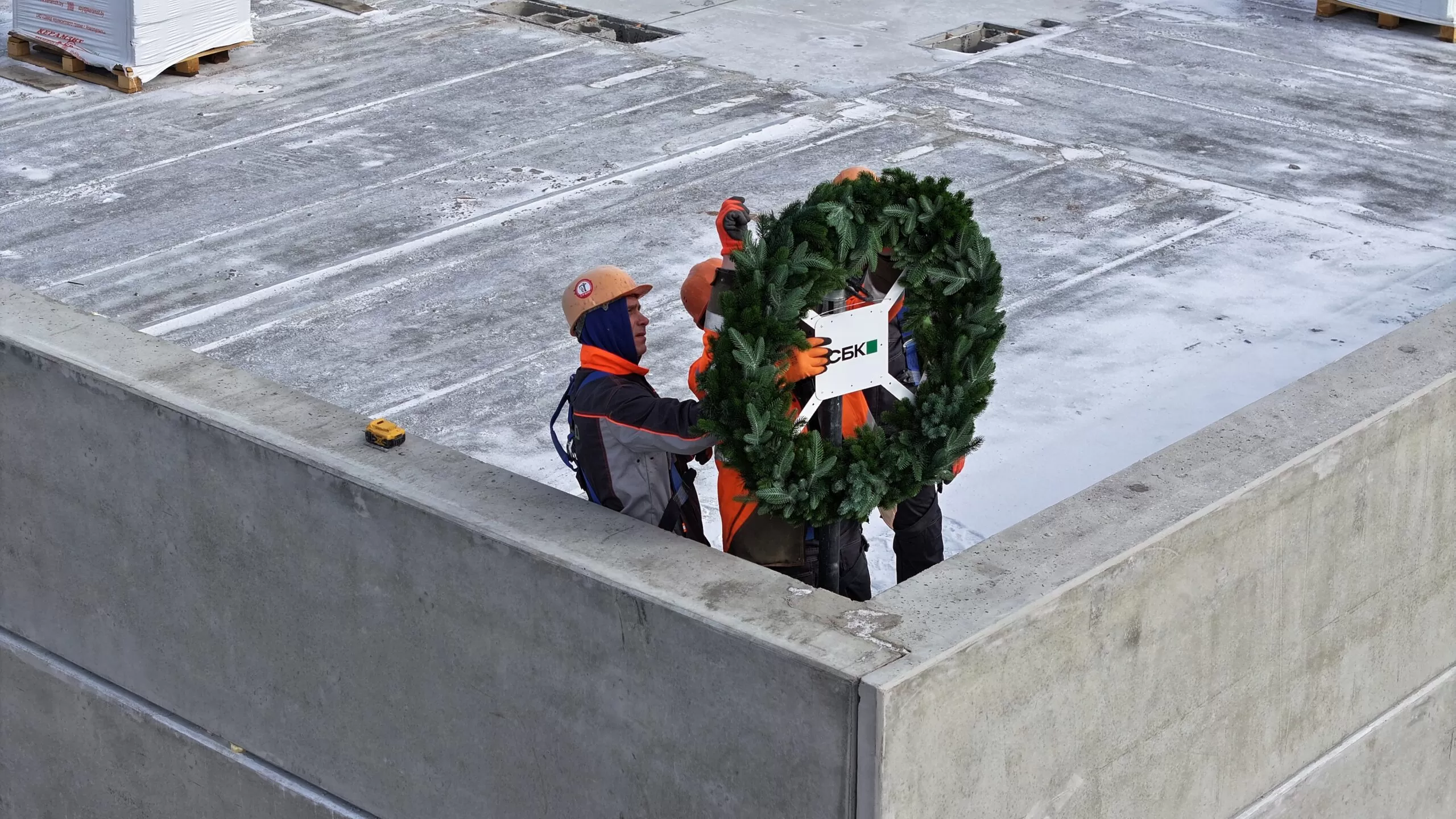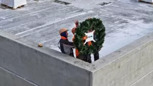 Наша уникальная традиция – установка венка на самую высокую точку здания и чествование бригады строителей.